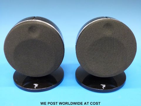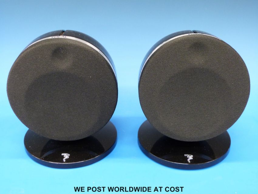 A pair of Focal Dome compact speakers with stands.