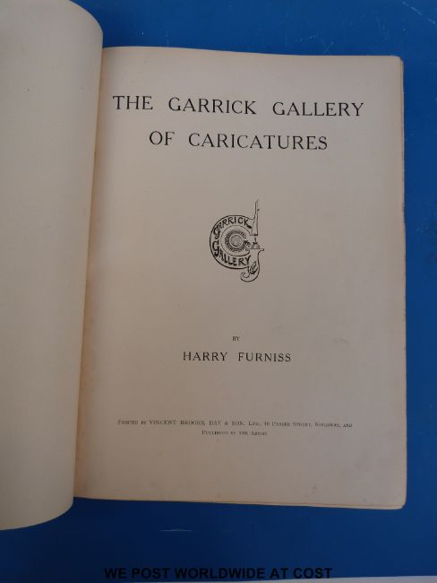 Harry Furniss, Garrick Gallery of Caricatures (Vincent Brooks, Day & Son Ltd, undated) blue cloth, gilt to top edge. Caricatures include Sir Henry Irving, John Wyndham, Somerset Maugham and J.M Barrie
