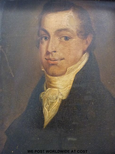 A pair of 19thC framed oils on board of a lady and gentleman (each 33 x 26cm)
