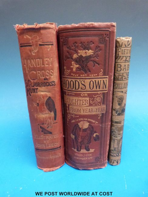 Handley Cross Mr Jorrock's Hunt (London, Bradbury, Agnew & Co. c1854) red cloth, together with Hood's Own or Laughter from Year to Year (London, Ward, Lock, 1901) red cloth, and W.S. Gilbert, Fifty 'Bab' Ballads (George Routledge) pictorial boards