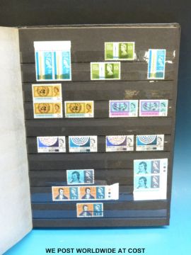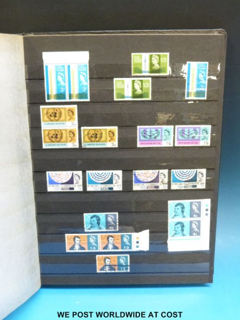Three stock books of Great Britain stamps, George V - QEII. Many mint stamps including blocks, cylinder numbers, booklets etc