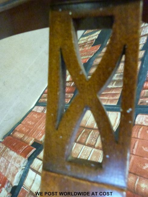 Three late 19thC/early 20thC dining chairs with lattice backs and reeded front legs together with two other chairs with curved front legs