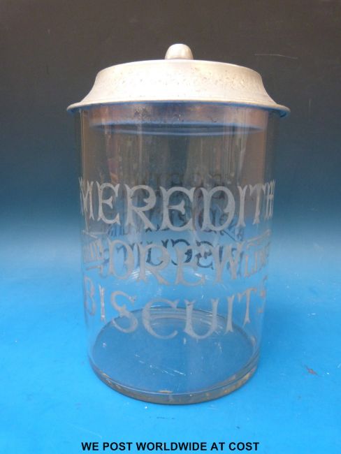 A vintage Meredith and Drew Ltd. glass biscuit barrel.