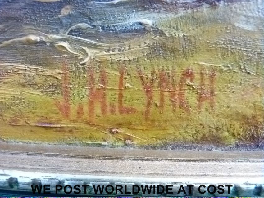 Joseph Henry Lynch (1911-1989) oil on board semi clad lady, boy and dog on a beach at sunset (57 x 87cm)