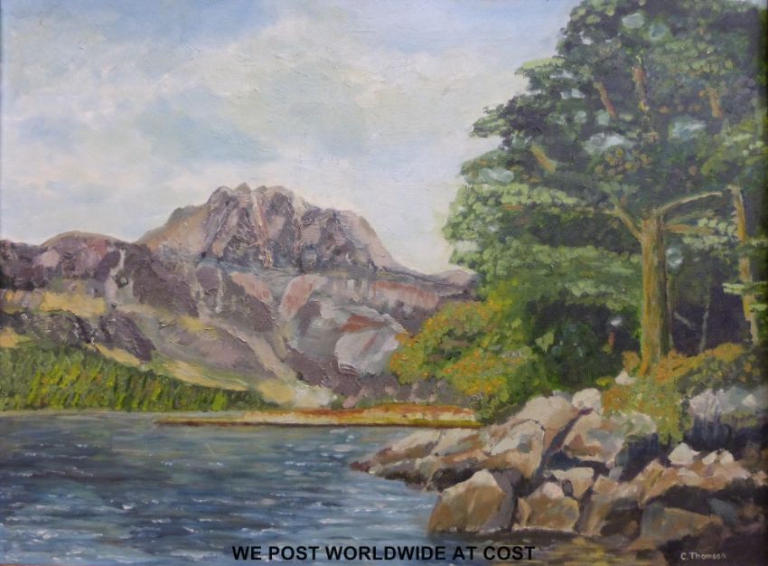 C Thomson oil on board Langdale Pikes near Windermere (44 x 60cm)