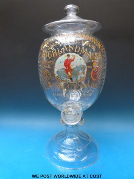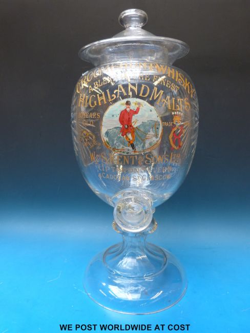 A cut glass bar top dispenser for Croome Hunt Whisky and W & S Kent of Upton on Severn and Glasgow