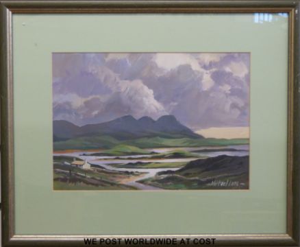 Michael Long (b 1940) Bristol Savages gouache of a mountainous scene label verso 'Forty Shades of Green' (23 x 33cm)
