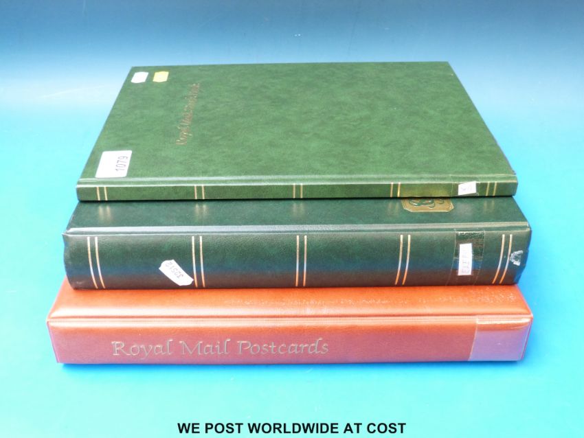 A stockbook of colonial stamps, includes mint George VI Gambia set, high value Federated Malay States x 3, covers etc. Also a stockbook of GB stamps Victoria & QEII and a PHQ postcard album