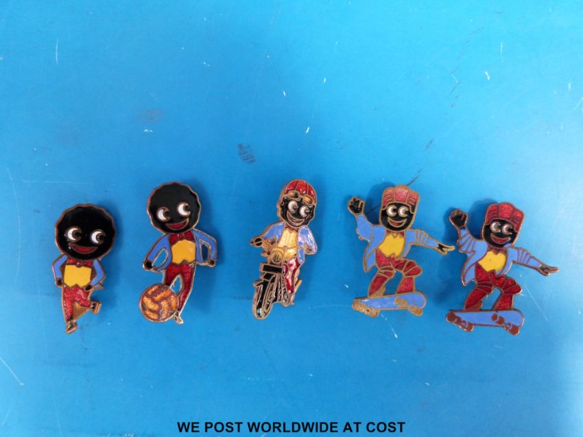 Fifty five Robertson's Golly enamel badges, late 1940's, 1950's etc examples including motorcyclists, footballers, scouts, some 1970's skate board etc.
