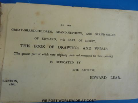 Edward Lear, A Book of Nonsense (London, Routledge, Warne & Routledge) fourth edition, together with Rodwell and Martin's Drawing Book for 1822