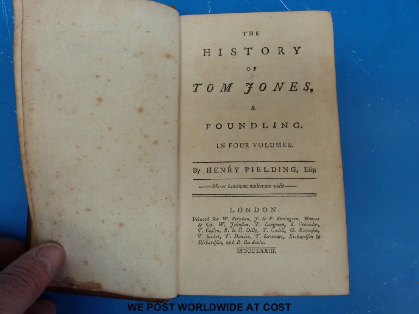 Henry Fielding, The History of Tom Jones (London, W. Straham, 1773), volume 1, full leather, gilt to boards and spine, burgundy label to spine