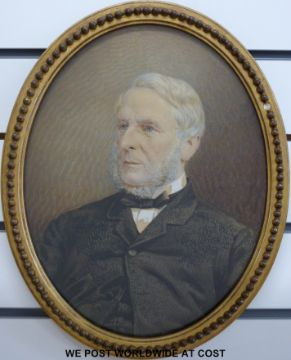 A pair of 19thC oval watercolour portraits of a lady and gentleman, both in gilt frames (max diameter 34cm)