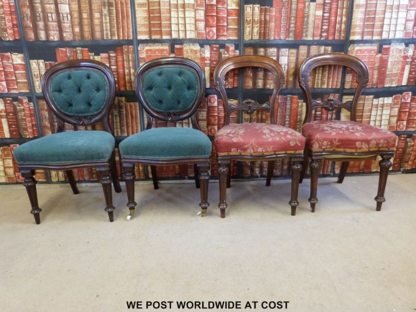 Two pairs of Victorian mahogany balloon back chairs