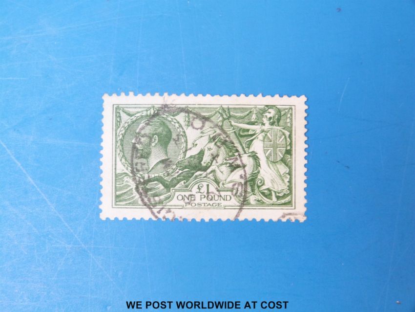 Great Britain 1913 £1 green Seahorse (SG 403) fine used