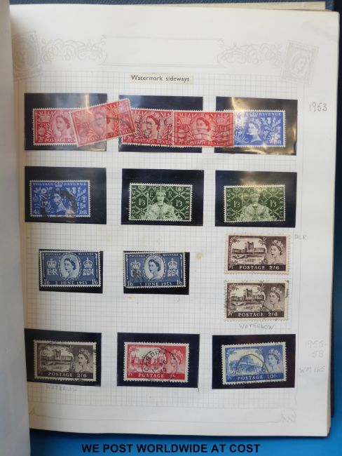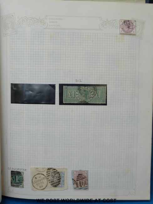 A loose leaf album of Great Britain stamps with a good range of early stamps including Victoria 1883 10s ultramarine (SG 183), 1887 £1 green (SG 212), Edward VII 1902 £1 dull blue green (SG 266) and 10s ultramarine (SG 265), George V Seahorses including 1918 10s dull grey blue mint (SG 417), 1929 UPC £1 black (SG 438), George VI and QEII stamps mint and used including phosphor, graphite etc