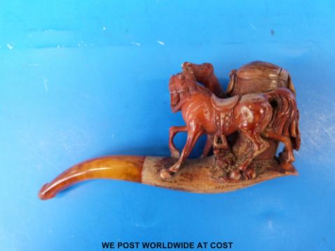 A carved Meerschaum pipe, briarwood pipe etc