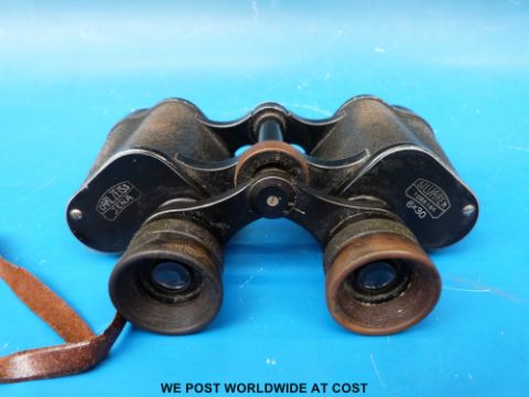 A leather cased pair of Carl Zeiss Jena 6x30 binoculars in original leather case