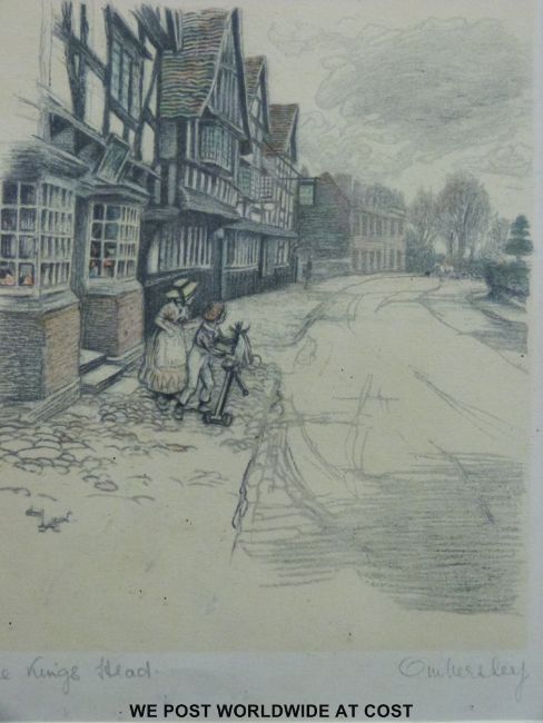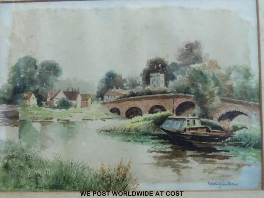 C.H. Dixon watercolour 'Tewkesbury' (23 x 29cm), Sonning-on-Thames by the same artist, various prints etc