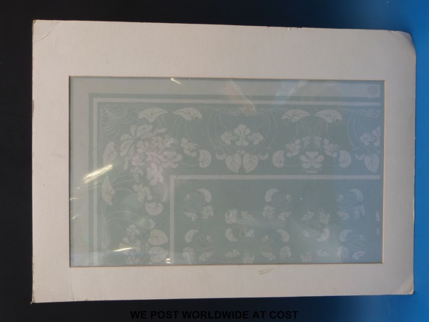 Mary Seaton, an original design for a sideboard cloth in linen damask (1905). White with decorative floral design on a pale green ground, mounted (27 x 44cm)