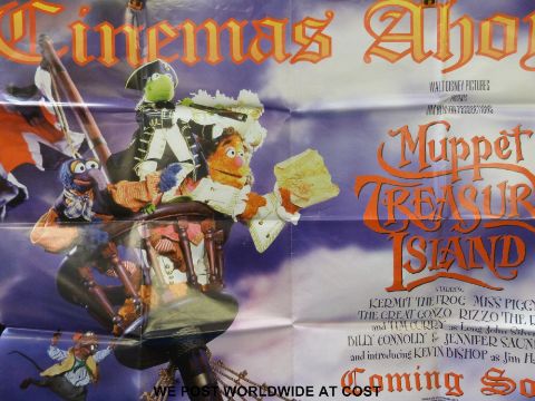A collection of over 130 Quad Cinema posters, including MGM, Warner Brothers, 20th Century Fox, Columbia Tristar, with films such as 'Wolf', 'Spy Hard', 'The Assassin', 'The Russia House', Walt Disney's 'Muppet Treasure Island', 'Champions' and Wyatt Earp with Kevin Costner etc