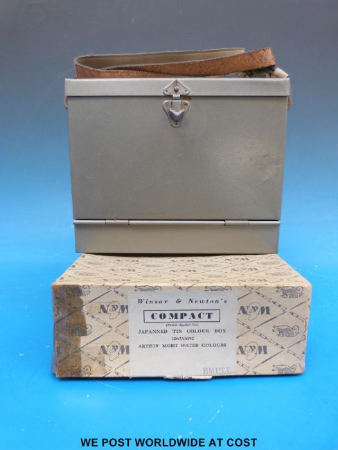 A boxed vintage Winsor & Newton compact colour box, with shoulder strap and fold out front