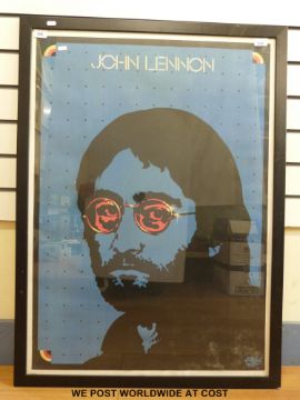 A large linen backed 1975 poster of John Lennon by Rafal Oblinski (G1945)