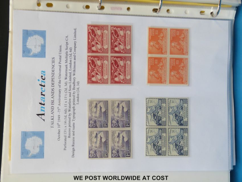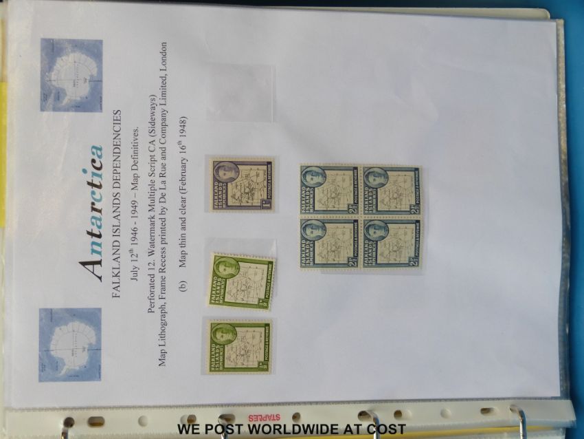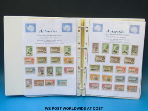 A collection of Falkland Islands Dependencies stamps in a ring binder