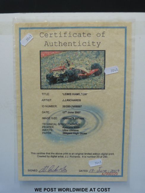 Formula 1 motor racing J. J. Richards limited edition print 20/250 of Lewis Hamilton.