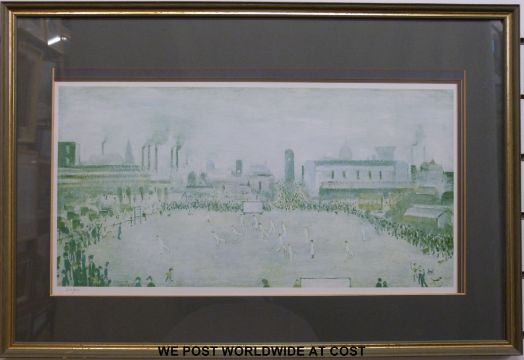 L.S. Lowry limited edition (609/850) print, verso 'Lancashire League Cricket Match' (32.5 x 66 cm)