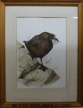 Terence Lambert watercolour of a great skua, framed and glazed (23cm x 33cm)