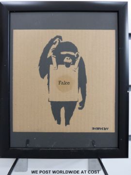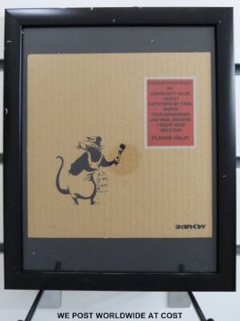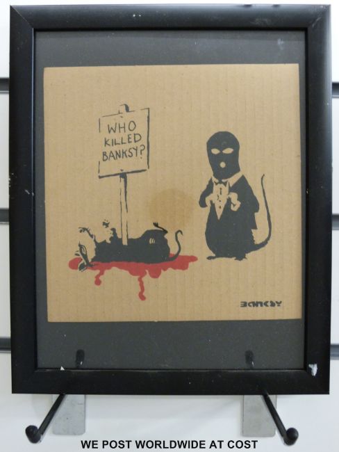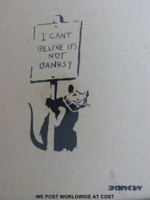 Nine contemporary street art limited edition prints in the manner of Banksy (each 18 x 18cm)