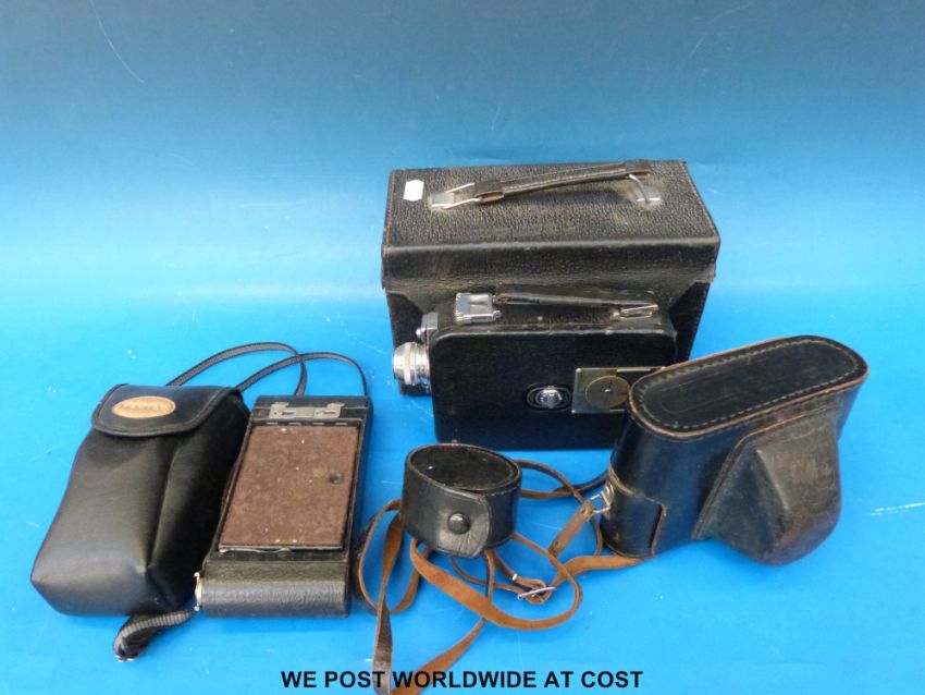 A quantity of collectable cameras to include Zenit, Pentax etc and a Sega Megadrive in a good quality leather holdall