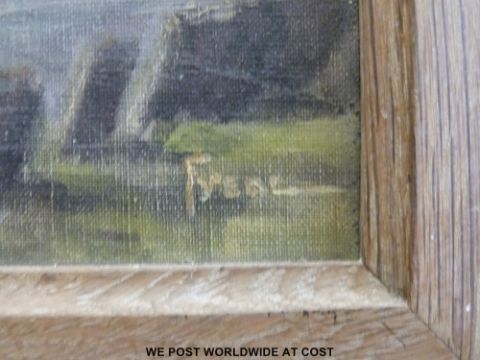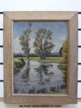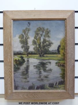 F Veal oil on board, label verso 'Reflections on the Test 83 St James Rd Southampton £2-10-0', signed lower right (40 x 30cm)