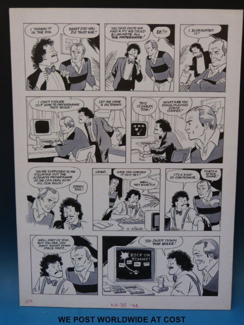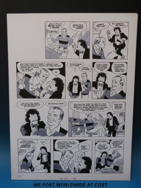 Cannon & Ball four black & white with grey wash original art pages by artist Bill Titcombe, three signed by the artist