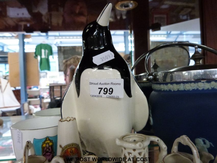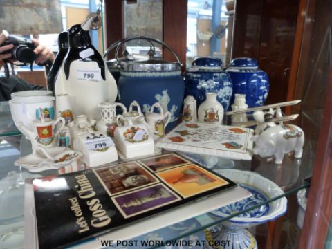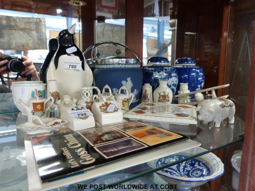 A collection of crested ware including Goss, Carlton ware, Wedgwood, ginger jars and a ceramic penguin