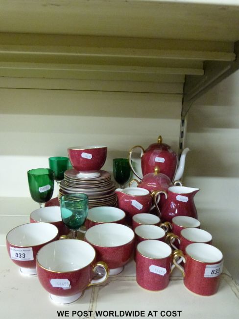 A Wedgwood red and gilt tea and coffee set and four glasses
