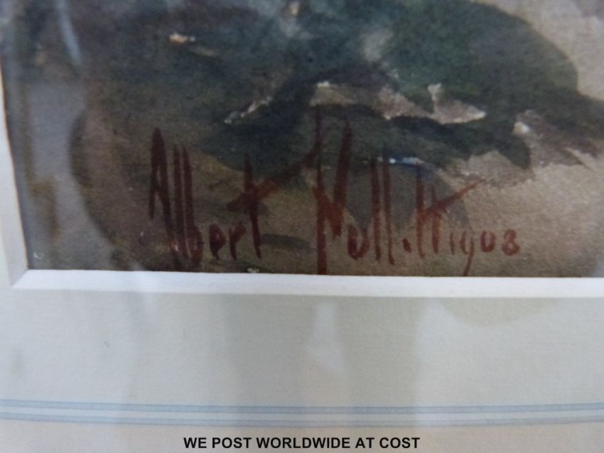 Albert Pollitt (1856-1926) watercolour of a fisherman beside the river (35 x 56cm)