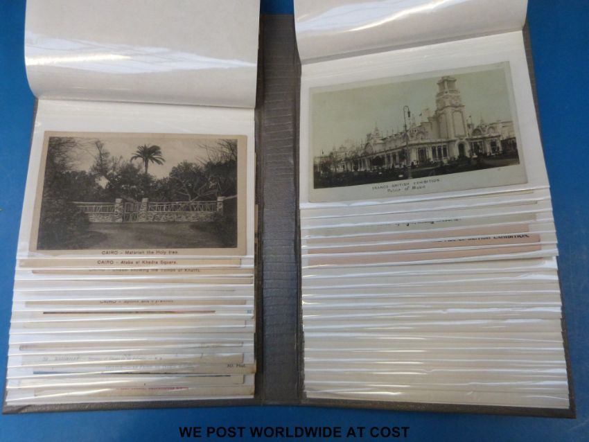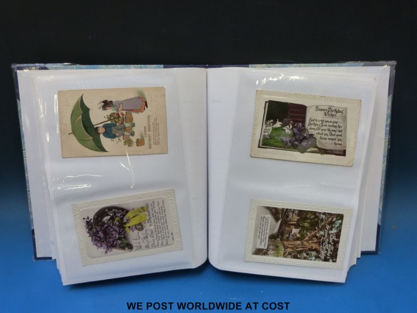 Two albums of postcards including Port Said, Egypt, WW1, silks including RMS Teutonic, some Alaska cards including early native American Indian on skis, Africa, Lawson Wood, Mabel Lucie Attwell etc