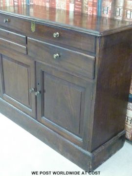 An unusual 19thC mahogany cabinet with lift-up lid, three drawers below and cupboard to base (W94 x D35 x H79cm)