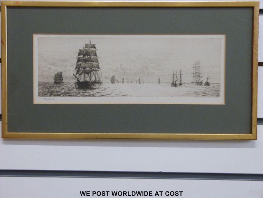 W Wyllie, two seascape engravings, both signed bottom left in pencil (both 10.5cm x 32cm)