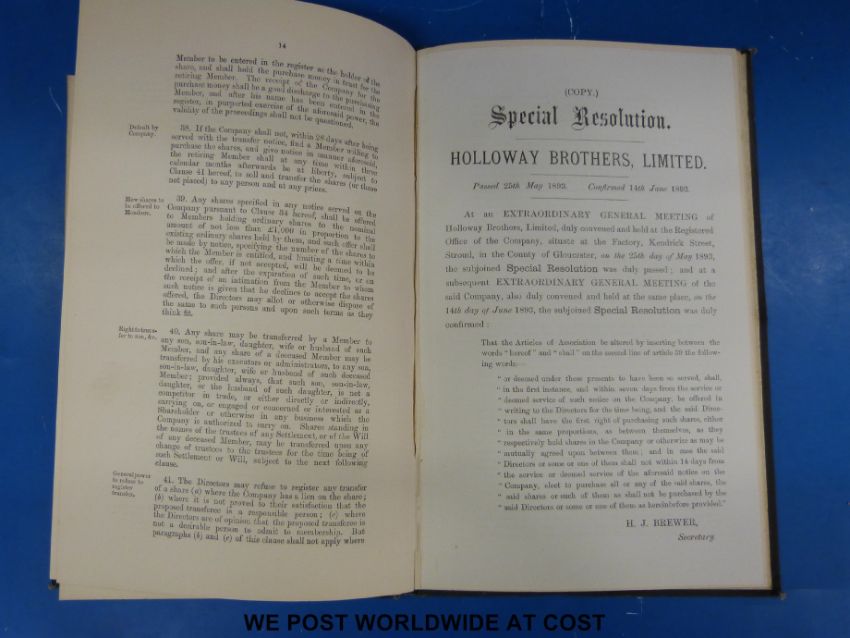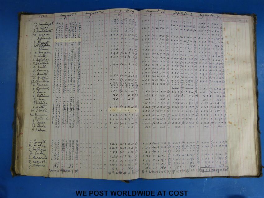A very large collection of ephemera 1854-1940's relating to George Holloway / Holloway Brothers Ltd, Stroud, clothing manufacturers (Stroud and Gloucestershire interest). Includes ledgers, detailed minute books 1903 - 1913, account books, staff wage book from 1919, share ownership details etc.