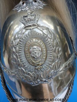 A Victorian Yorkshire Dragoons Guards helmet in silvered finish with plume