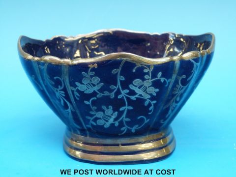 A Richard Ginori blue pedestal bowl with silver lustre decoration (7.2cm tall)