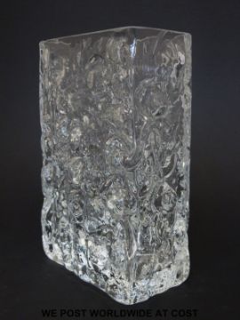 Geoffrey Baxter for Whitefriars clear textured bark glass vase (19cm tall)