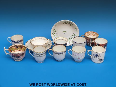 A collection of late 18th/19thC Derby and Imari porcelain cups and coffee cans