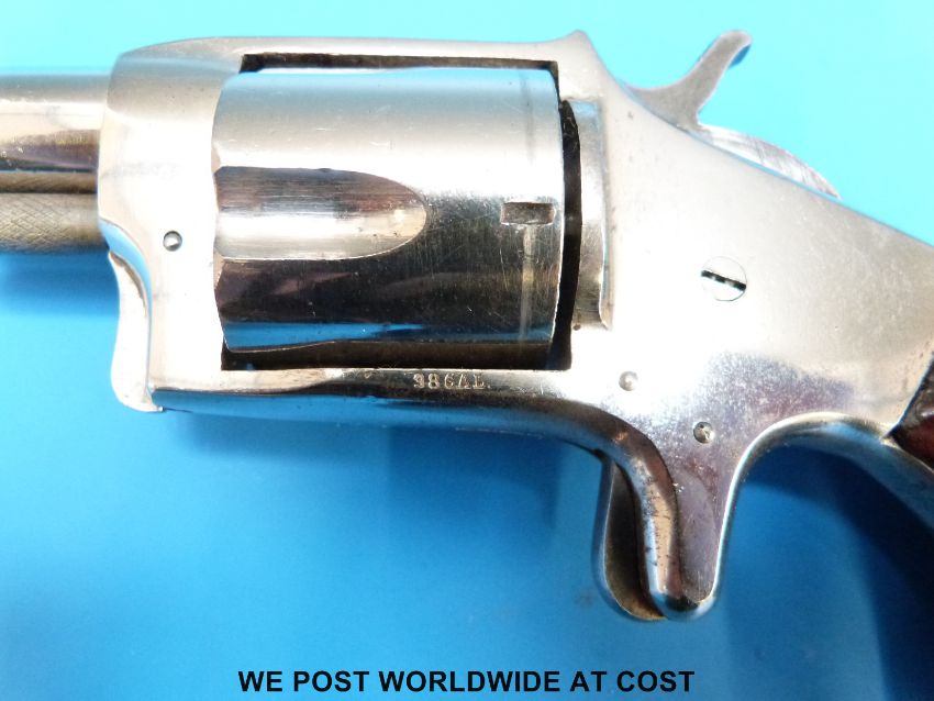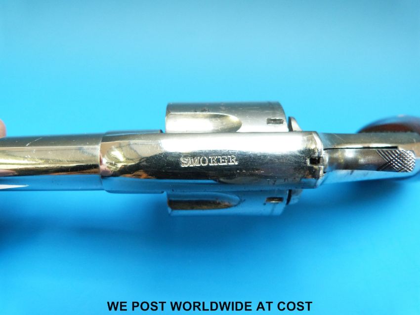 American 'Smoker' .38 rimfire five shot revolver with two piece walnut bird's head grip, spur trigger and 5cm barrel, stamped to the top of the frame 'Smoker' and to the side 38 Cal. Overall length 19cm