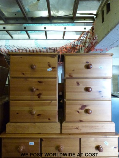 A pair of pine bedside chests of three drawers (W48 x D43 x H73cm)