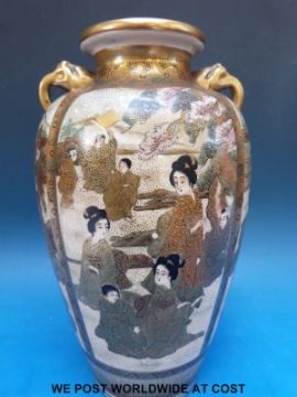 A 19thC Japanese Satsuma vase decorated with immortals (25cm tall)