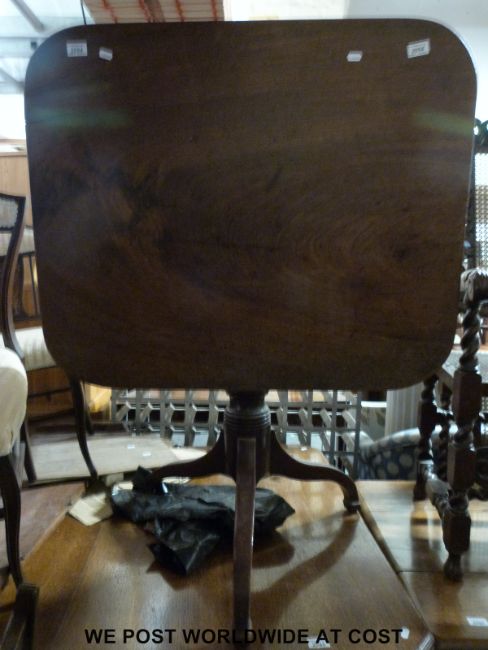 A 19thC mahogany tilt top table with single plank top (W88 x D73 x H70cm)