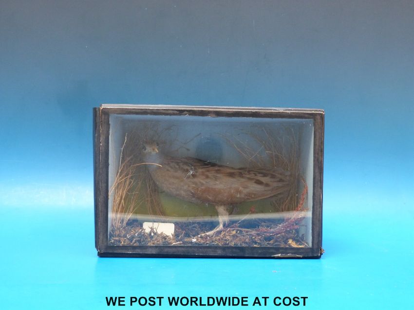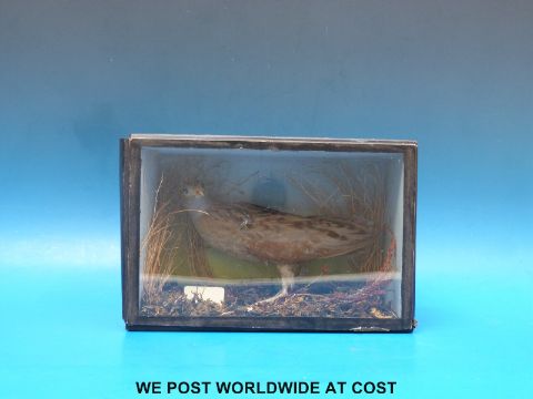 A taxidermy study of a corncrake in case (H34 xW28cm)